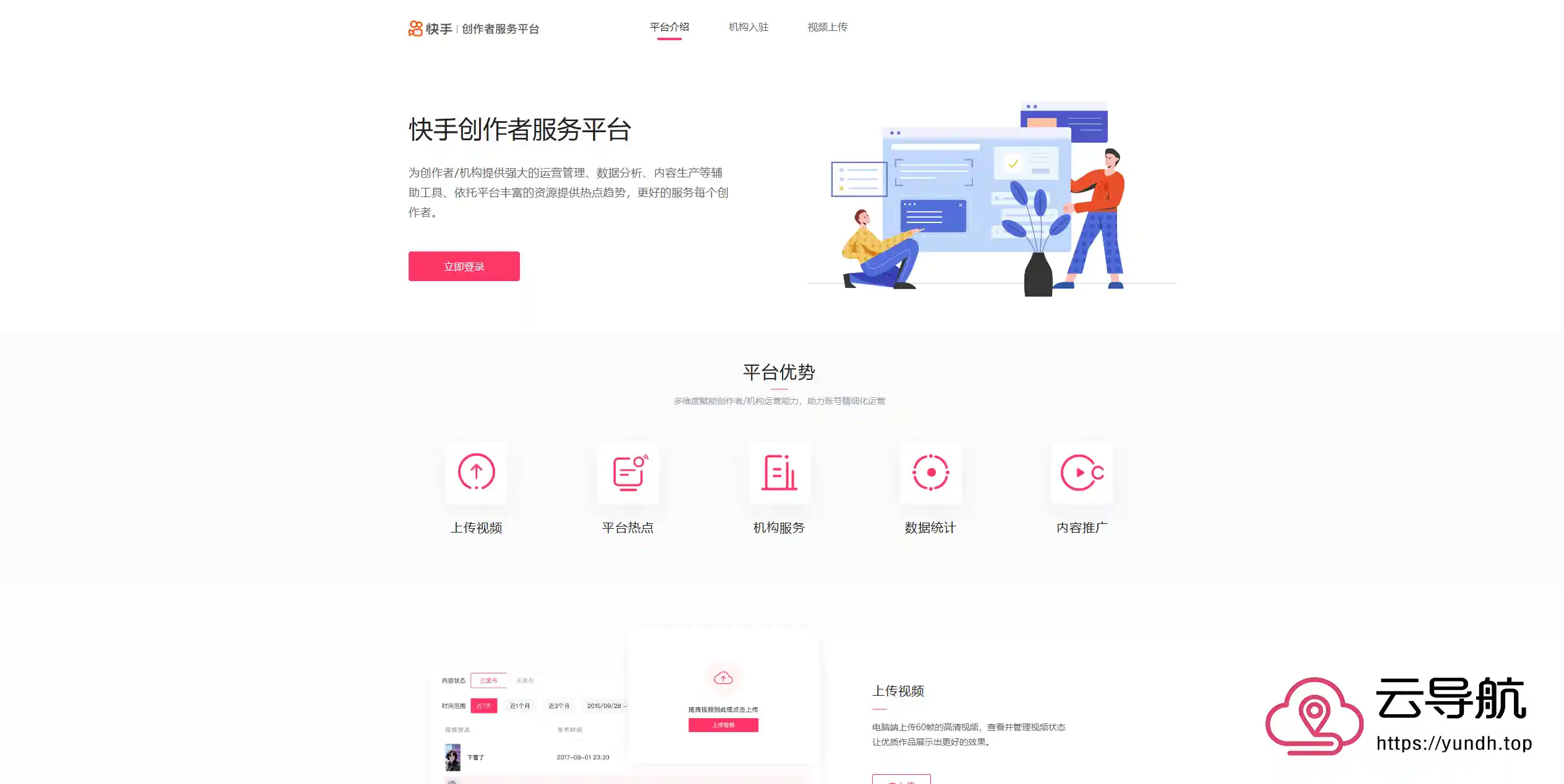- 登录后,可在平台内进行视频上传、查看平台热点、查看账号数据等操作