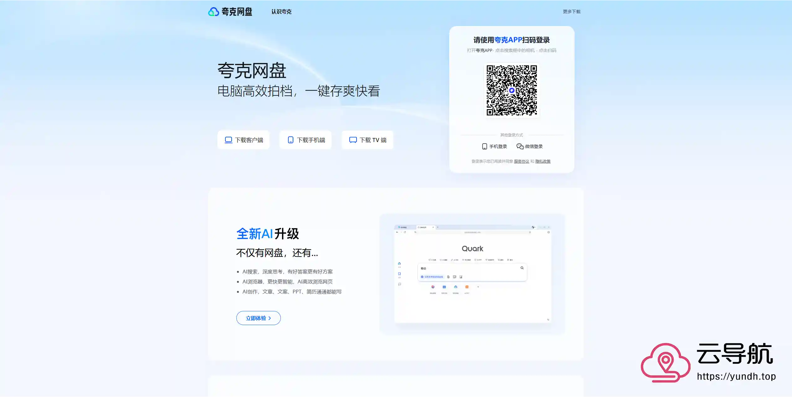 - 可选择下载客户端、手机端或 TV 端进行使用,也可在网页端登录夸克账号使用相关功能