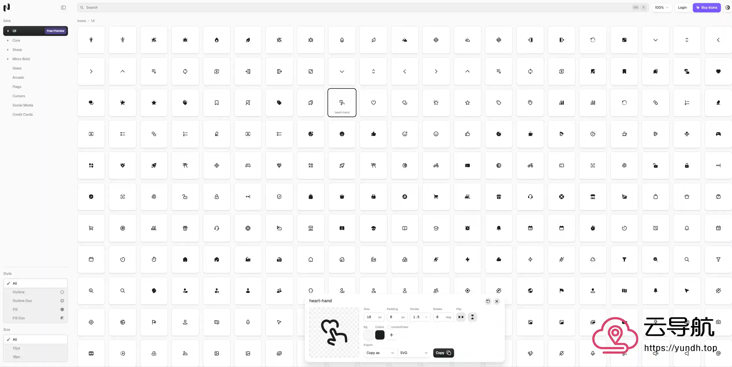 - 提供超过 35000 个优质 SVG 图标,涵盖各类风格、主题的图标资源
