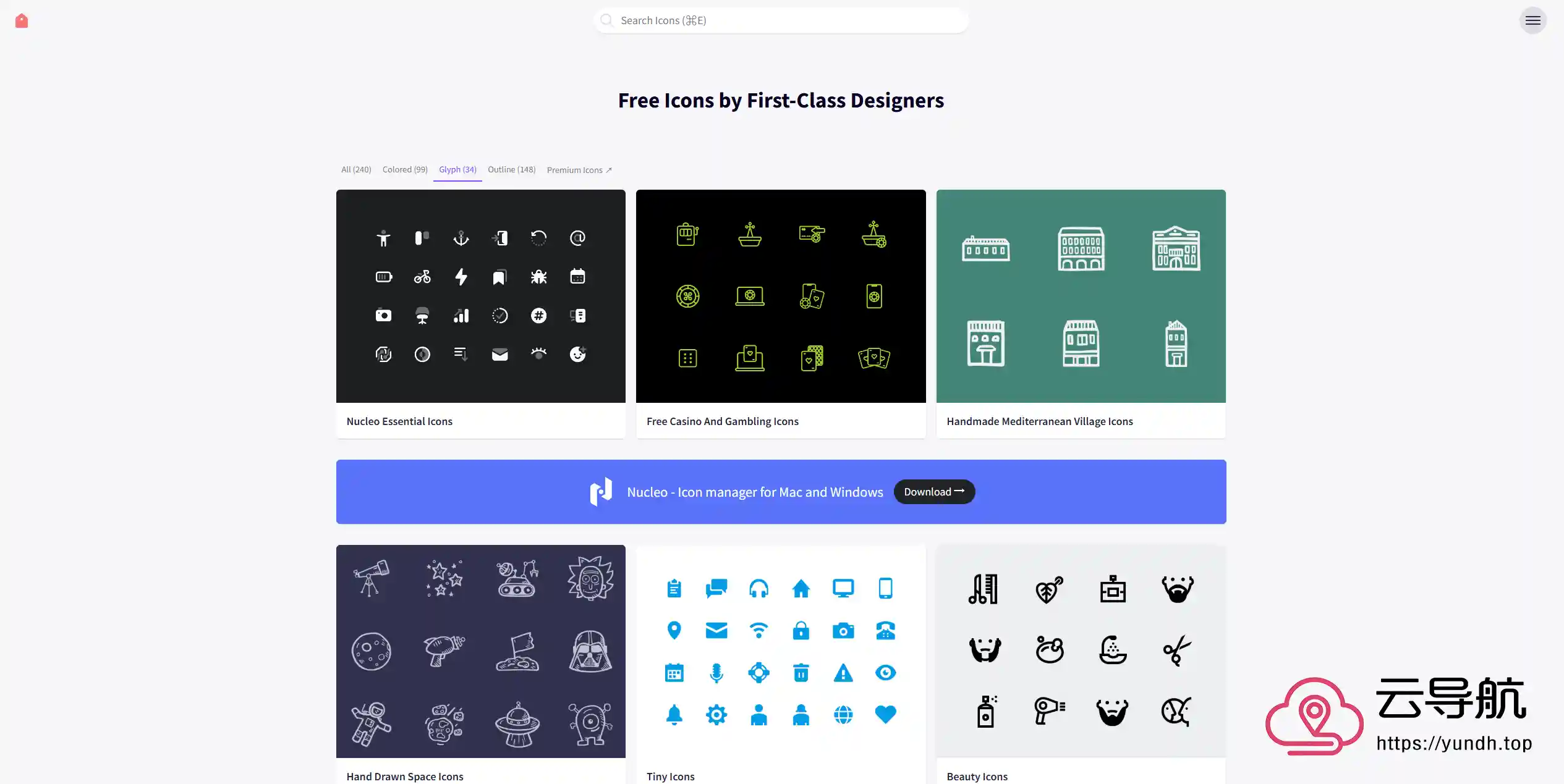 - 提供多种免费图标集,如 Nucleo Essential Icons、Unoline Icon Set、Zodiac Signs 等,涵盖不同风格、主题的图标资源