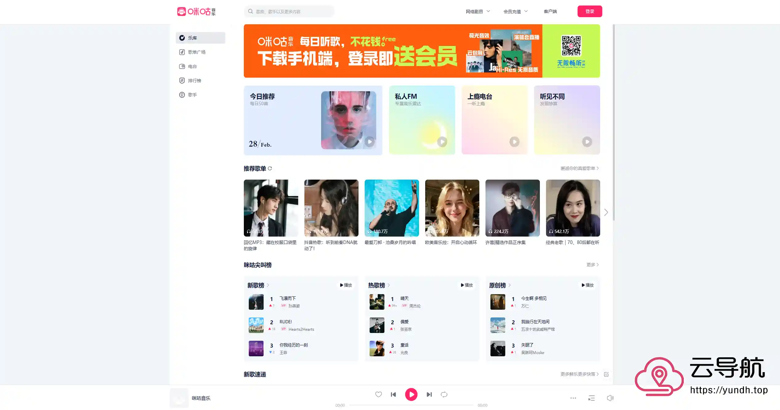 - 设有电台板块,提供私人 FM、上瘾电台等个性化电台服务